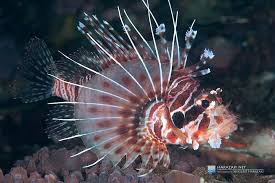 ミノカサゴは、美しい長いヒレをたなびかせて優雅に泳ぐ姿から、海の貴婦人とも言われています。